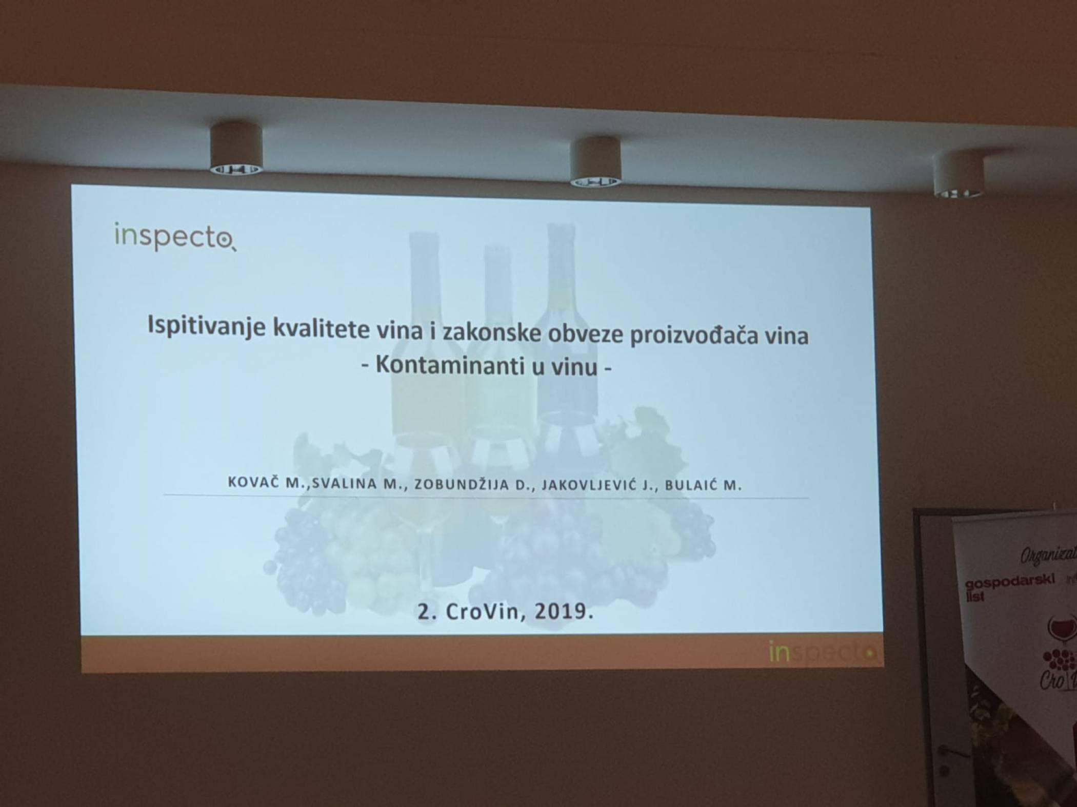 Tvrtka Inspecto d.o.o. je na stručnom skupu sudjelovala kao sponzor i stručni predavač u sekciji "Aktualnosti u vinogradarskoj i vinarskoj proizvodnji“ s temom "Ispitivanje kvalitete vina i zakonske obveze proizvođača vina“ gdje je poseban naglasak stavljen na kontaminante u vinu. Predavanje je održala Marija Kovač, mag.ing.proc.
